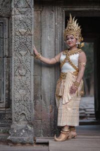 Be transformed with traditional Khmer dress into your choice of an apsara (heavenly dancer), the mythical Neang Neak, or the legendary royals King Jayavarman VII or Queen Indradevi. Or choose to be dressed in the attire of the Chenla or Longvek eras. Available for men, women, couples and families. Once the transformation is complete, we’ll visit Angkor Wat, Ta Prohm or Bayon for your photoshoot. A temple pass is required and is not included in the package.